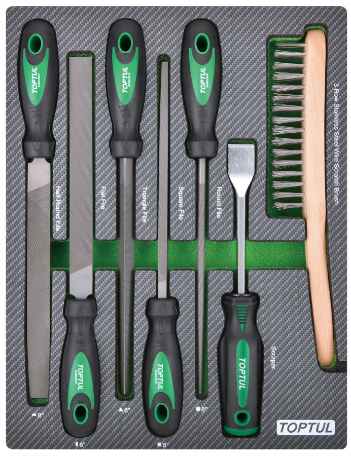 Набор инструментов, напильники, шабер и щетка, 7пр. в мягком ложементе TOPTUL