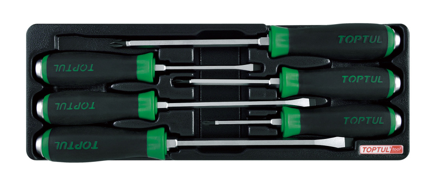 Приобрести Набор отверток ударных крест и шлиц 6 пр., в ложементе TOPTUL GAAT0602 от компании Toptul (Тайвань) из раздела Отвертки по цене 4 109 рублей.