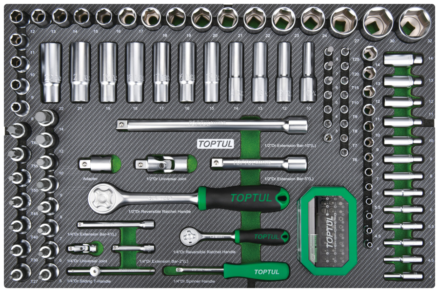 Набор головок и аксессуаров 1/4" и 1/2" 6-гр.,133 пр. в мягком ложементе TOPTUL GEDD348 купить в Иркутске и других городах России