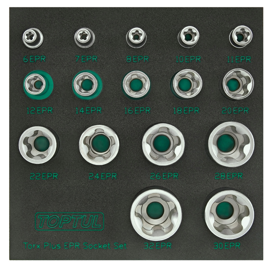 Набор торцевых головок TORX Plus EPR 1/4",3/8",1/2" 5-ти лучевые, 6EPR-32EPR, 16 пр. на ложементе TOPTUL GABF1601 купить в Иркутске и других городах России