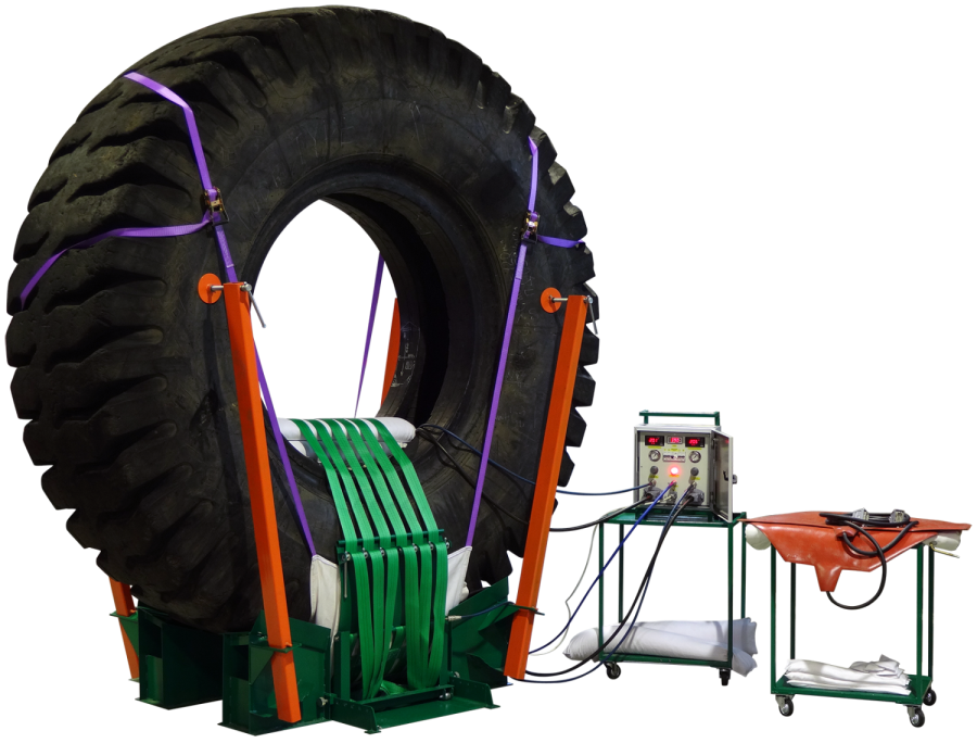 - ремонта повреждений крупногабаритных шин карьерной и внедорожной техники с одновременной установкой пластырей методом горячей вулканизации