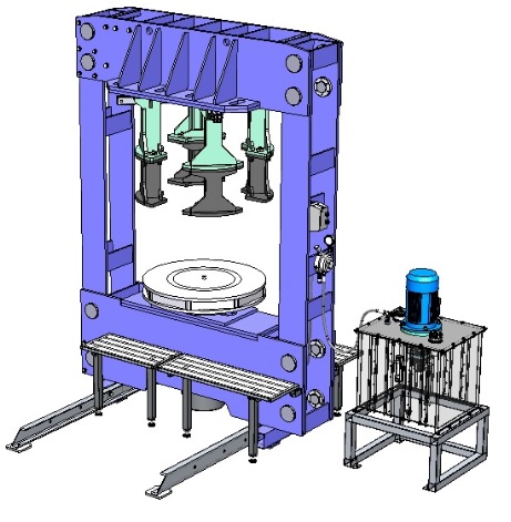 Пресс шиномонтажный для цельнолитых шин погрузчика 150т. ПШ150